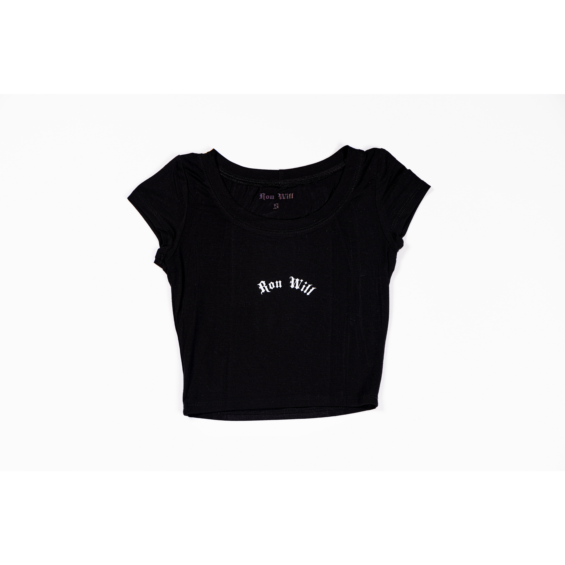 The brand’s signature streetwear spirit. Women's black cropped t-shirt with white logo on front.